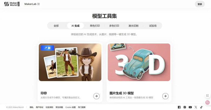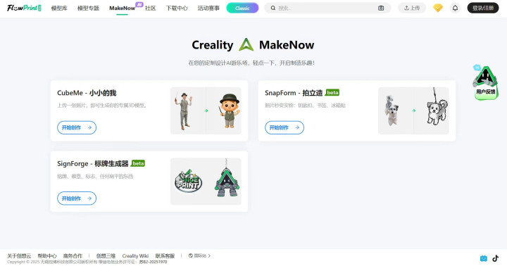 ▲创想三维和拓竹均与腾讯混元合作开发了AI建模工具。图片来源:创想云和MakerWorld官网。